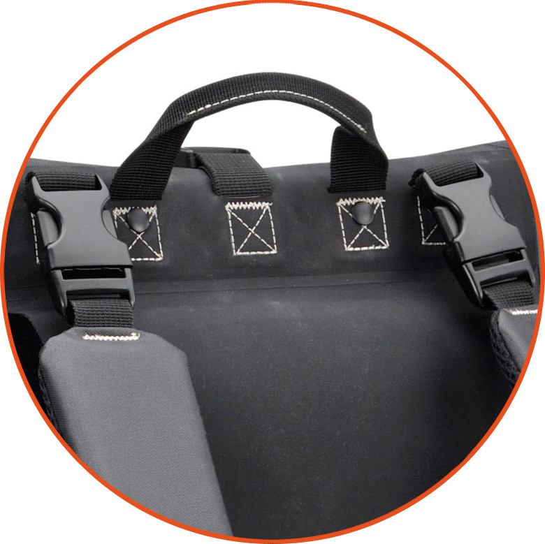 W całości wykonana z wodoodpornego poliestru. Produkt łączy w sobie cechy plecaka i sakwy, dając nam możliwość wygodnego transportowania sakwy na bagażniku za pomocą haków R & K Vario oraz na plecach dzięki dołączonym do zestawu odpinanym szelkom. Wyjmowana kieszeń wewnętrzna z neoprenu na laptop 15" + dwie dodatkowe kieszonki boczne.